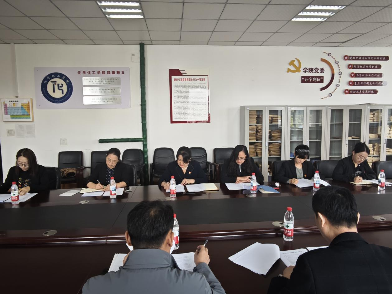 为深入学习贯彻习近平总书记重要讲话和重要指示精神,加强党员领导干部的政治理论学习,扎实推进学院党建工作高质量发展,9月28日9:00,化学化工学院在理工楼564组织开展2025年第九次党委理论学习中心组学习。会议由党委书记邵艳秋主持,学院党委理论学习中心组成员参加。体育与健康科学学院党委书记李志超、音乐与舞蹈学院党委书记于辉列席会议。