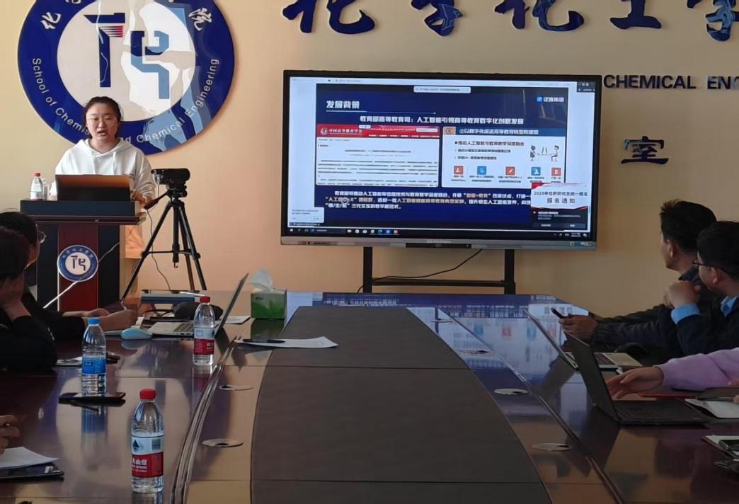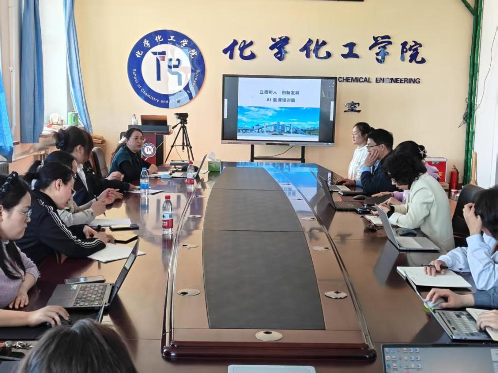 为丰富数字化教学手段,提升AI技术应用能力,积极探索创新教学模式,将人工智能技术深度融入教育教学全过程,4月23日,化学化工学院举办“立德树人,创新发展-AI助课培训篇”专题活动。本次活动由教学副院长任玉兰主持,黑龙江超星分公司高级讲师王佳怡主讲,全体专任教师参加。