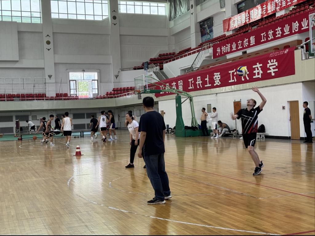 为丰富师生课余生活,增进师生间的交流与合作,增强化学化工学院的凝聚力,营造积极向上的学院氛围,6月25日11:40,化学化工学院于体育馆举办师生气排球友谊赛。本次比赛由学院工会和学生会组织,采用教师组与学生组的对抗形式,由相关领导和教师组成教师组,学院排球队同学组成学生组。