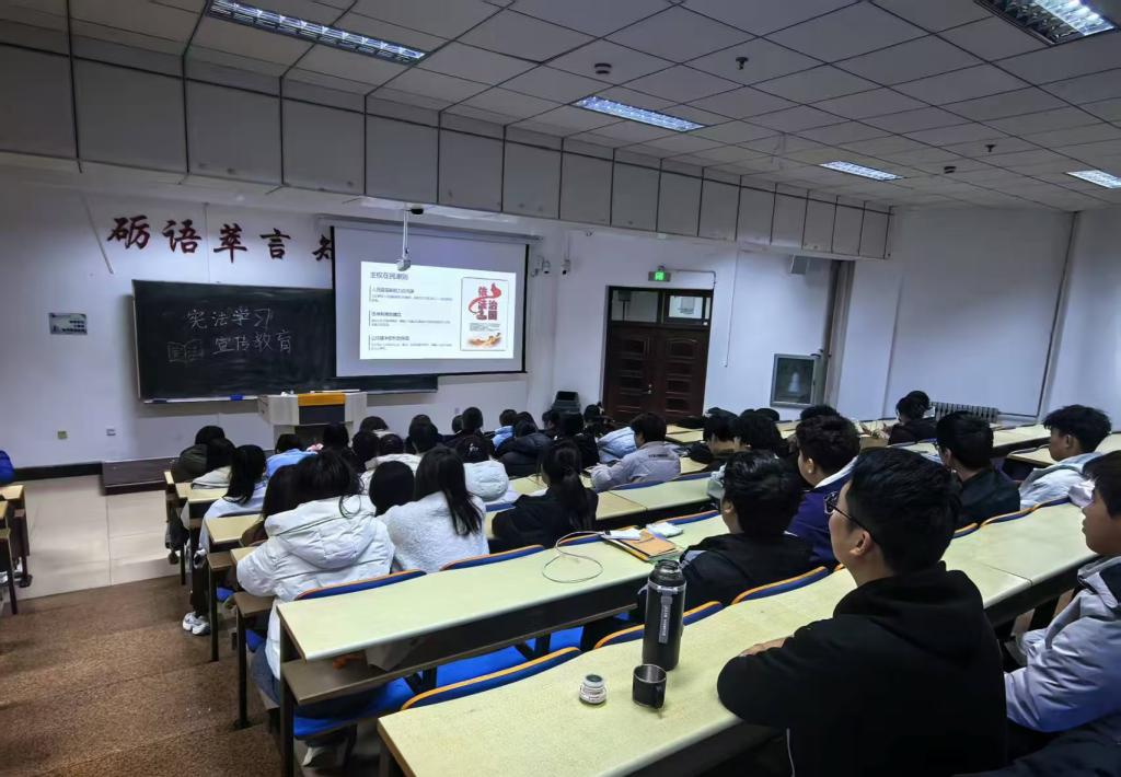 班会上,各班负责人围绕宪法的核心地位展开讲解,阐明其不仅是国家治理的根本准则,更为公民权利提供了坚实保障,并呼吁同学们主动学习宪法、增强法治观念,将宪法精神践行于日常言行,自觉维护宪法权威,同时还鼓励大家争做宪法宣传的使者,积极影响身边人,共同营造“尊法、学法、守法、护法、用法”的校园风尚。