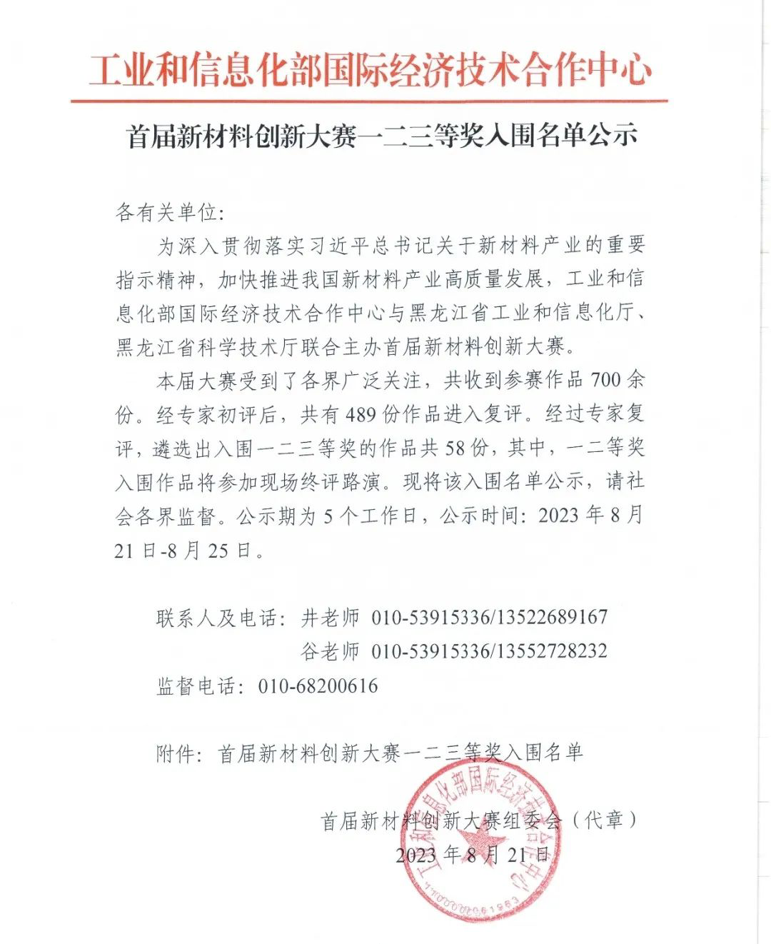 喜报!化学化工学院学子在工信部首届新材料创新大赛中喜获佳绩