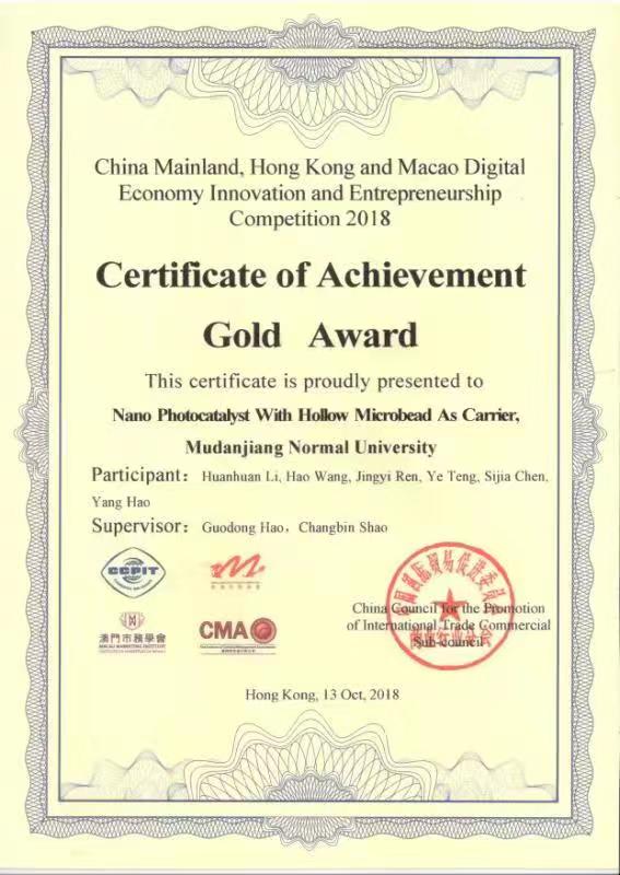 我校化学化工学院郝国栋教授带领李欢欢、汪昊和任净佚等学生所做的“空心微珠为载体的纳米光催化剂”项目,在此次竞赛中获金质奖。
